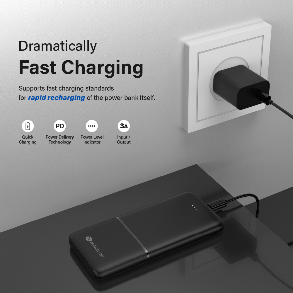 - Max Energy power bank features an impressive 10000 mAh battery capacity and quick 2A input/output, ensuring fast and effective charging to reduce waiting time.