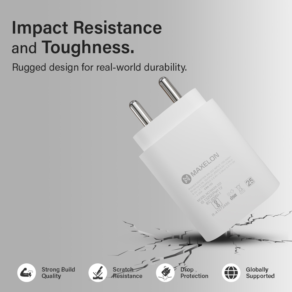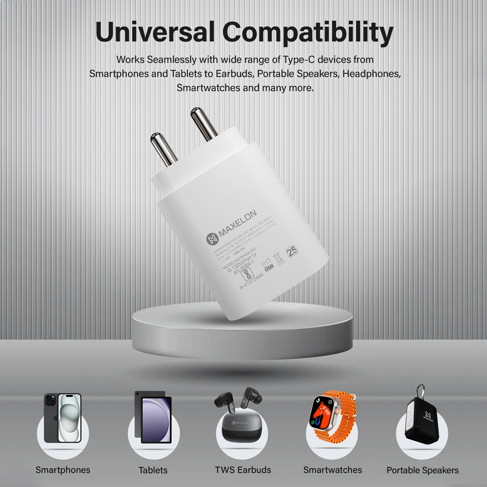 MAXELON – MX-252 25W C-Type Super Fast Adapter | Super Fast Charger Adapter Fast Charging Mobile Adapter | Supports Samsung PSP, Fast charge 2.0 and other Android protocols