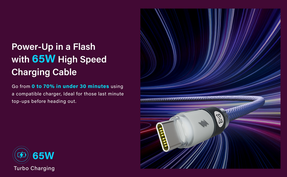 Turbo Type-C To Type-C ,3.0A Nylon Braided Cable (1m) 65W