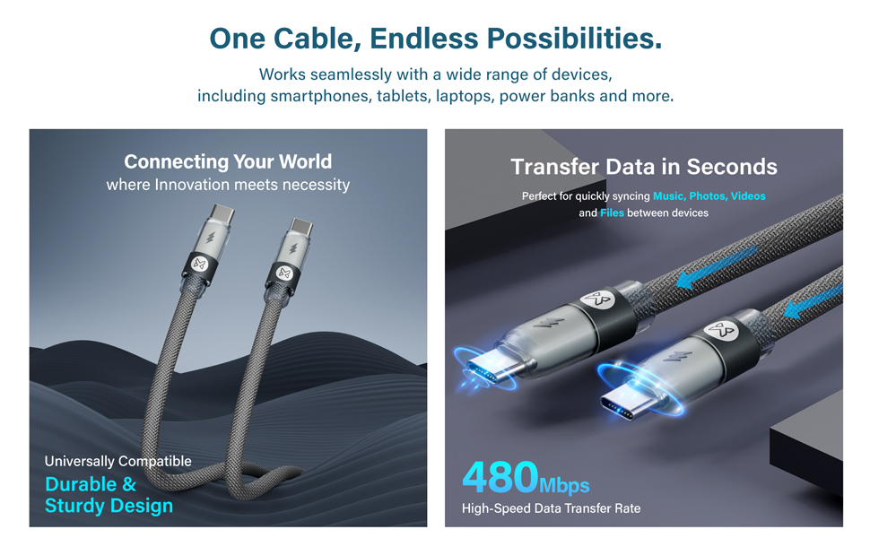 Extra thick heads, for immediate charging and 480 mbps data sync.